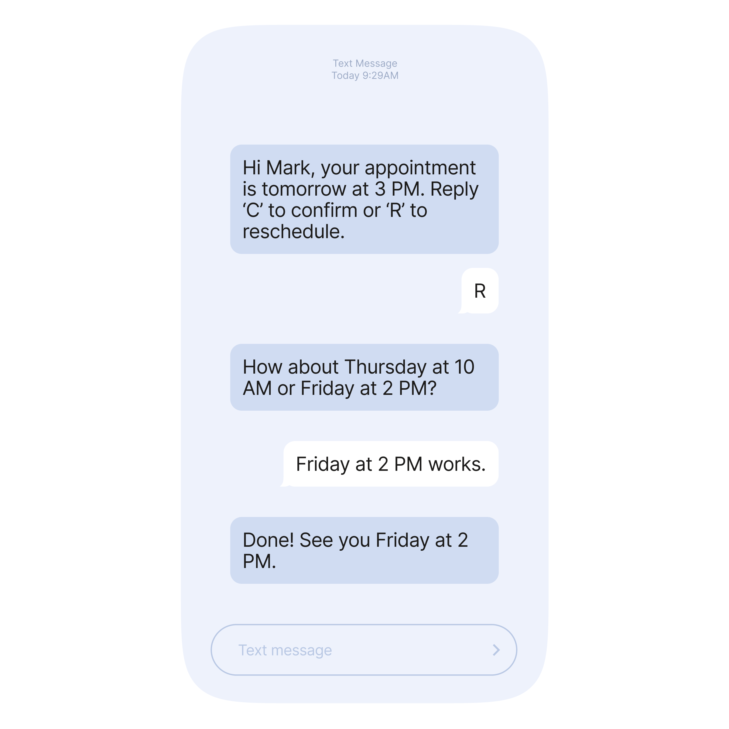Streamline your real estate operations with SMS alerts, appointment reminders, and client updates via simple text.